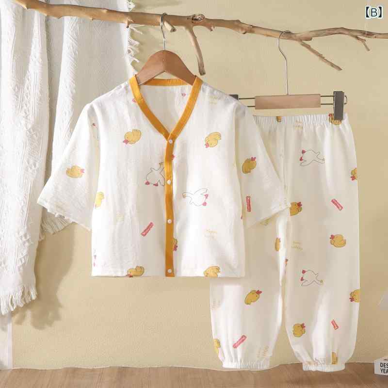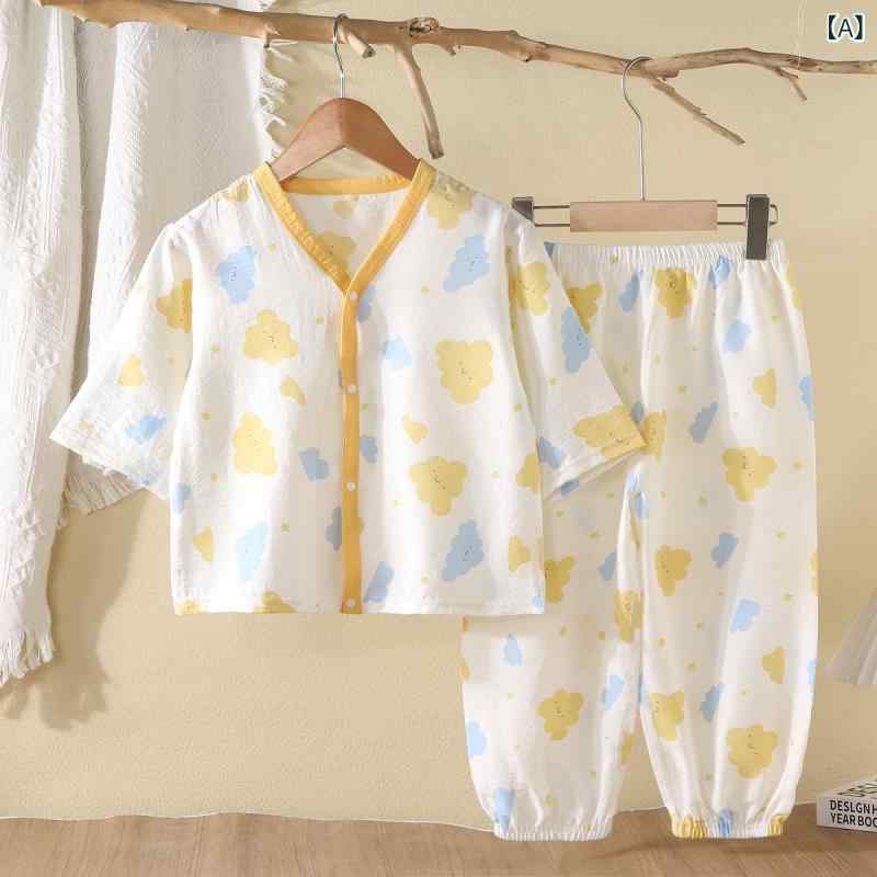 子供用パジャマ 上下セット 7分袖 ベビー・キッズ ルームウェア 薄手 春夏 秋 動物柄 かわいい 雲柄 愛心柄 恐竜柄 イエロー ピンク グリーン 90 100 110 120 130 140 150 160