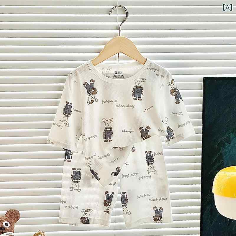 ・安全等級: A類・生地名称: 綿・対象: 男女兼用・カラー: 背带小熊七分袖套装, 布偶狗狗七分袖套装, 粉花朵兔七分袖套装, 蝴蝶结兔七分袖套装, 恐龙乐园七分袖套装, 麦黄南瓜七分袖套装, 米杏天鹅七分袖套装, 浅粉娃娃七分袖套装・対象年齢: 3~8歳 (100~140cm)・スタイル: 韓国風・対応身長: 100cm, 110cm, 120cm, 130cm, 140cm, 150cm, 160cm, 170cm・主な生地の組成: 綿100%・生地の厚さ: 普通・パターン: 動物, キャラクター・機能: 吸湿・速乾・生地加工: 柔らか加工・シーズン: 夏・実写画像: モデル着用・商品カテゴリ: 子供用ホームウェア・要素: セットアップ, キャラクター, プリント