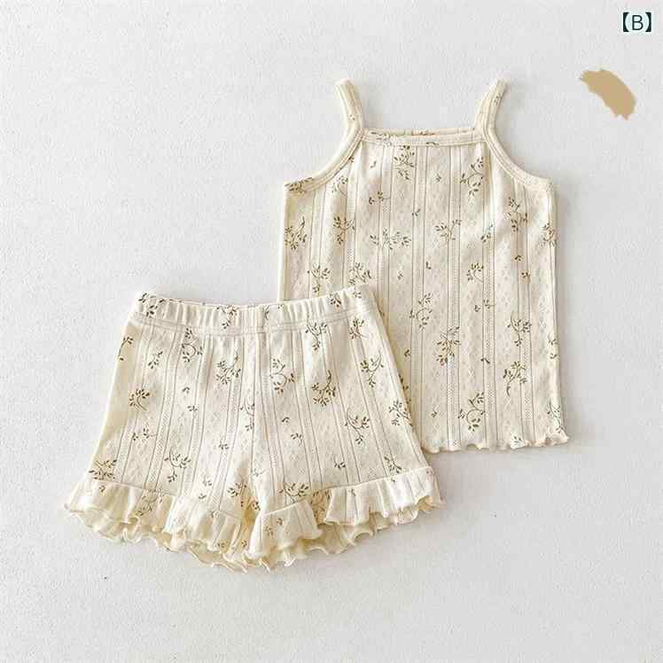 子供服 女の子 ベビー キッズ サマー キャミソール ショートパンツ 上下セット 部屋着 パジャマ 寝巻き 薄手 ピンク系 小花柄 73 80 90 100 110
