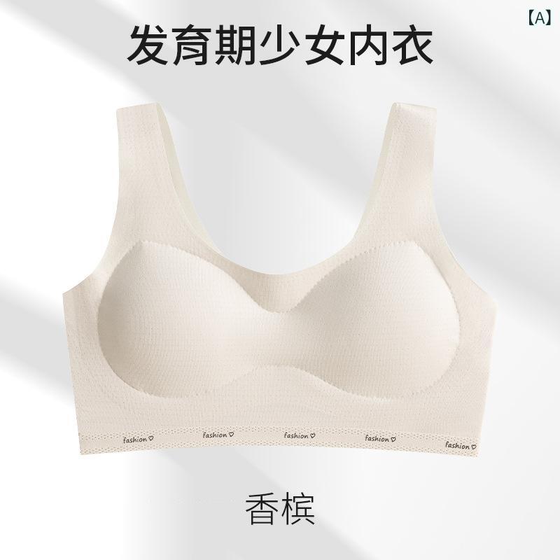 ・対象: 12~15歳・素材: 錦綸、ナイロン・スタイル: 背心式・カップタイプ: フルカップ・モールドカップタイプ: 薄型・パッド素材: スポンジ・ワイヤー: 無し・ホック: 無し・ストラップ: 固定ダブルストラップ・機能: 通気性・カラー: シャンパン、ピンク、ライトブルー・サイズ: M、L、XL、2XL