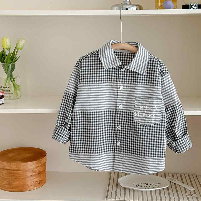 シャツ キッズ 長袖 格子柄 子供服 男女兼用 トップス 普段着 おしゃれ かわいい 綿100% 春秋
