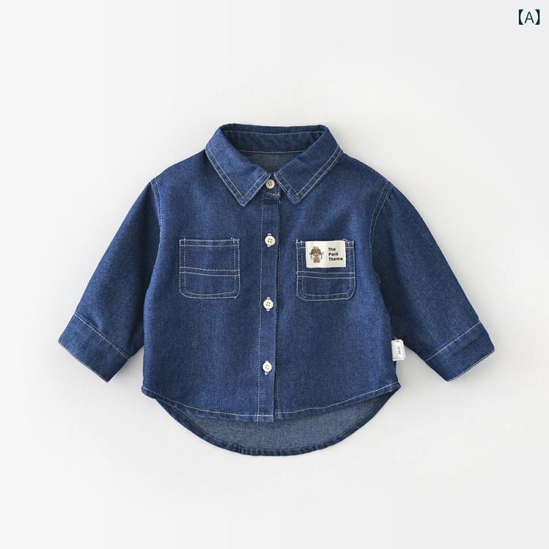シャツ ベビー服 長袖 デニムジャケット 韓国風 子供服 トップス 乳幼児 秋物 綿100% 深青色 73cm 80cm 90cm 100cm