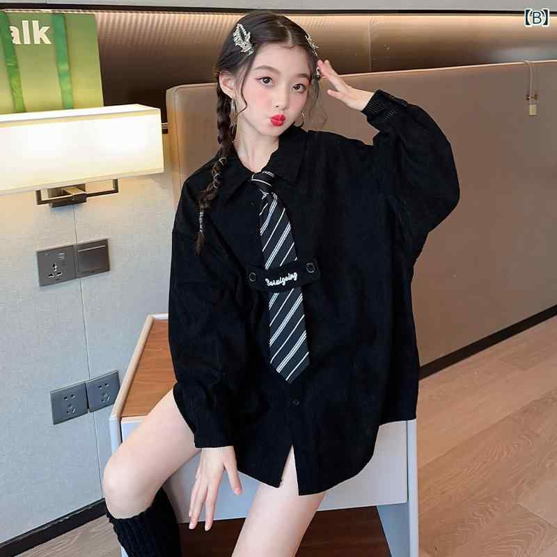 シャツ キッズ 女の子 長袖 コットン 襟付き 春秋 ゆったり トップス ブラウス 子供服 白 黒
