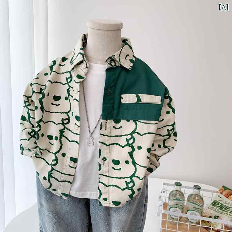シャツ キッズ 男の子 子供用 全綿 コットン 韓国風 カジュアル トップス 長袖 春秋 おしゃれ かわいい 小熊柄 90 100 110 120 130 140cm