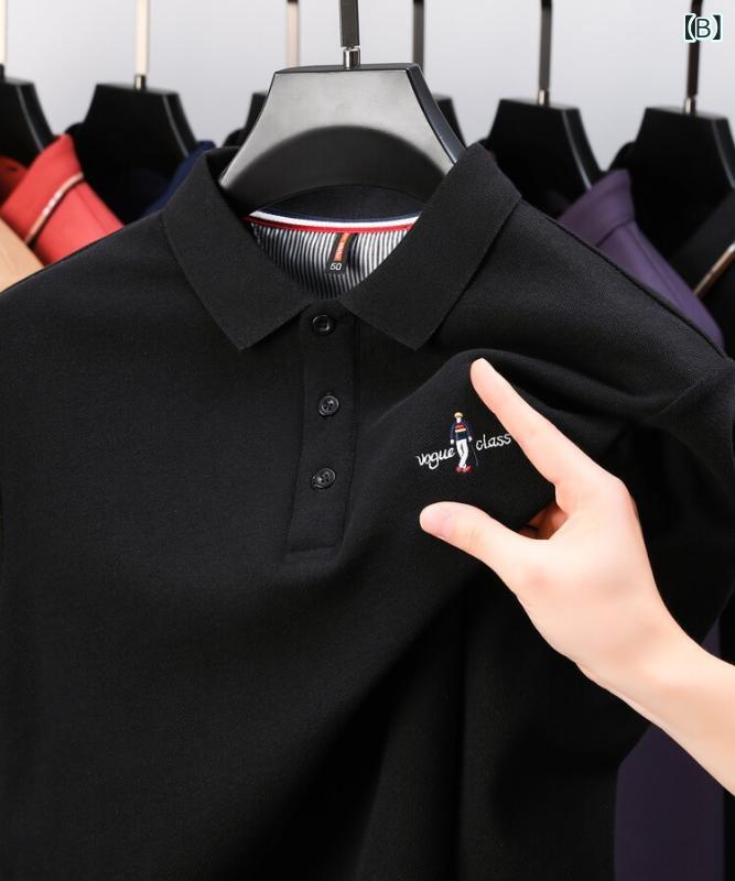 ポロシャツ メンズ 男性用 長袖 トップス コットン 綿100% 刺繍入り 無地 春秋 開襟 カットソー カジュアル
