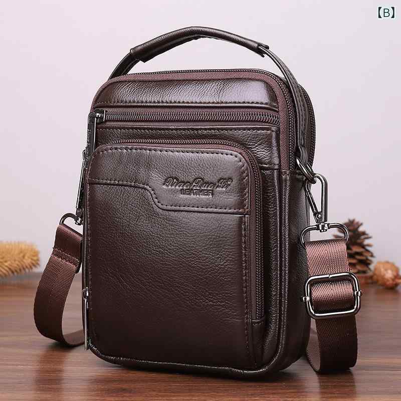 メンズ ショルダーバッグ 本革 ミニショルダーバッグ 牛革 ハンドバッグ 小型 多機能 縦型 横型 ブラック ブラウン
