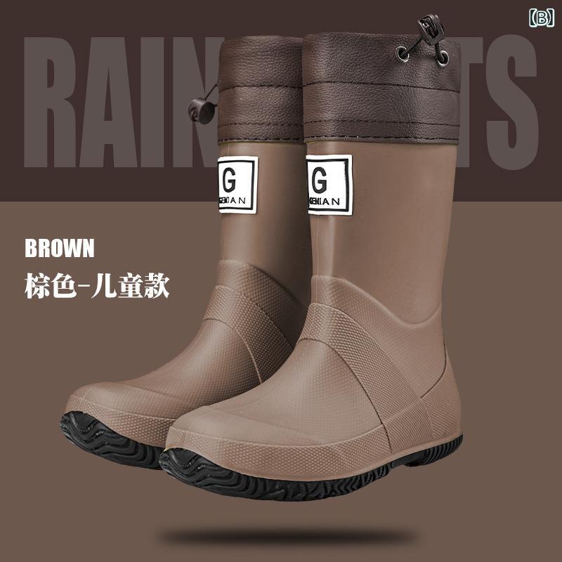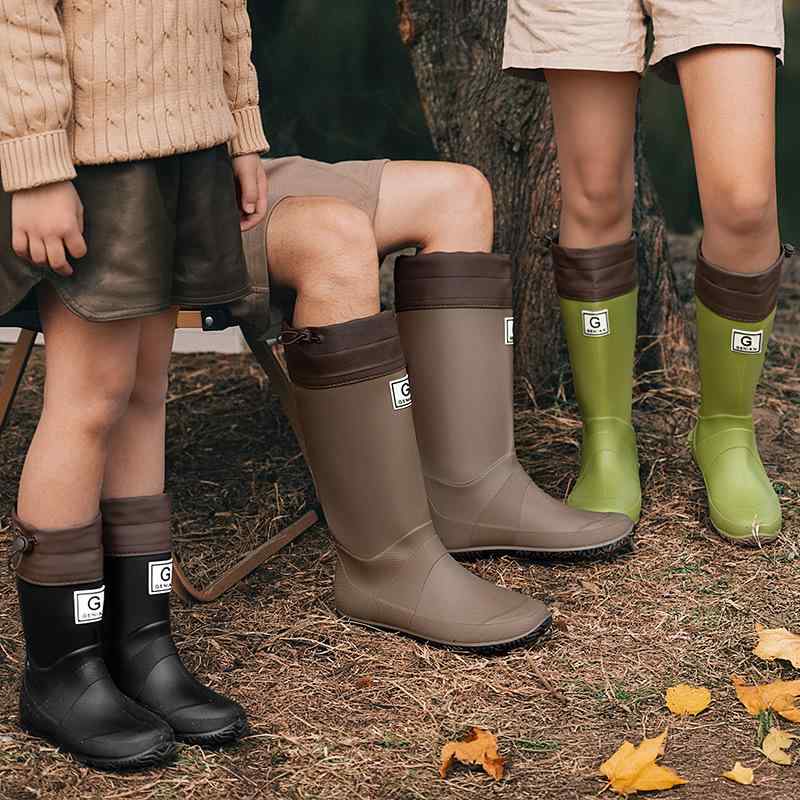 項目名: 対象値: 大人、子供 項目名: 高さ値: 中筒 項目名: 厚さ値: 普通 項目名: ヒール値: フラット 項目名: 柄値: 文字 項目名: 素材値: PVC 項目名: カラー値: 黒、茶、グレー、緑 (子供用/大人用) 項目名: サイズ値: 内長17cm、内長18cm、内長19cm、内長20cm、内長21cm、内長22cm、内長23cm、内長24cm、内長25cm、36、37、38、39、40、41、42、43、44 項目名: スタイル値: アウトドア 項目名: カテゴリ値: レインシューズ 項目名: 留め具値: スリッポン