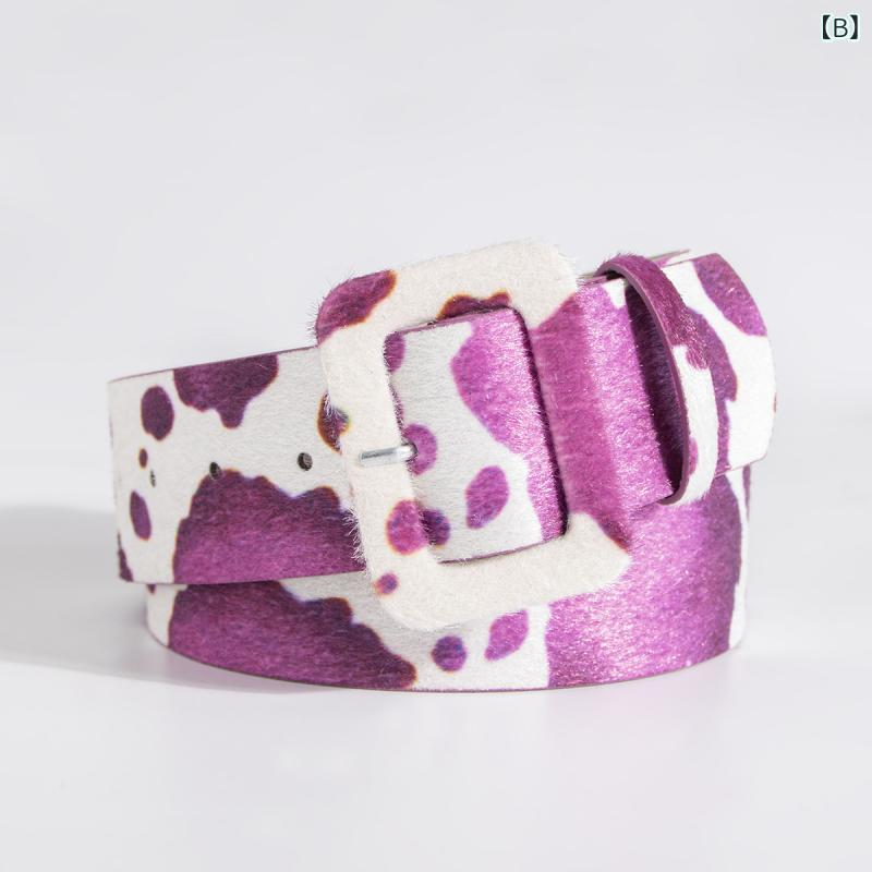 ベルト レディース ファッション小物 ウエストマーク カウ柄 アニマル柄 フェイクレザー 幅広 ブラウン系 ブラック ピンク系 ブルー