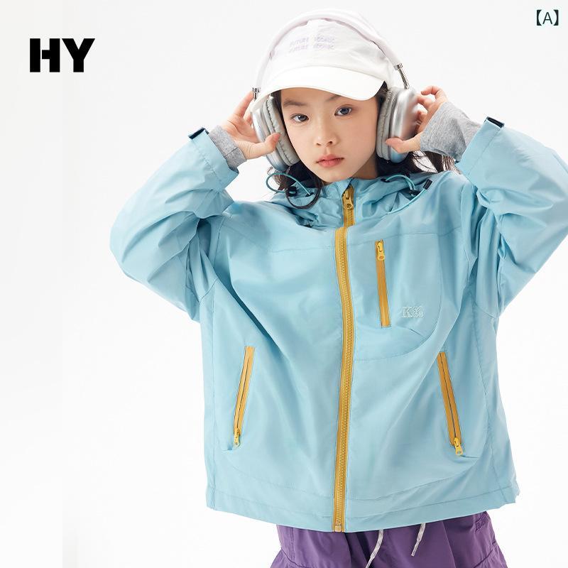 ・性别: ユニセックス・対象年齢: 中・高学年(8歳以上、140cm以上)・ネックライン: 襟付き・スタイル: 韓国・柄: 無地・厚さ: 普通・生地加工: 柔らかい・フード: 取り外し不可・要素: おしゃれ・袖丈: 長袖・写真: モデル写真あり・安全レベル: B類・生地: 30D ポリエステル・裏地: ポリエステル100%・留め具: ジッパー・メイン素材: ポリエステル100%・タイプ: ベルトなし・カラー: ブルー, パープル・対応身長: 120cm, 130cm, 140cm, 150cm, 160cm, 170cm・着丈: ショート・インナー: なし・商品カテゴリ: 子供用アウター/ジャケット/コート