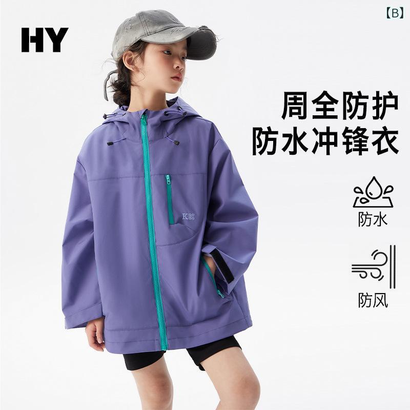 キッズ 子供用 アウター ジャケット マウンテンパーカー 防水 防風 フード付き ポリエステル 無地 ブルー パープル 120cm 130cm 140cm 150cm 160cm 170cm 春秋
