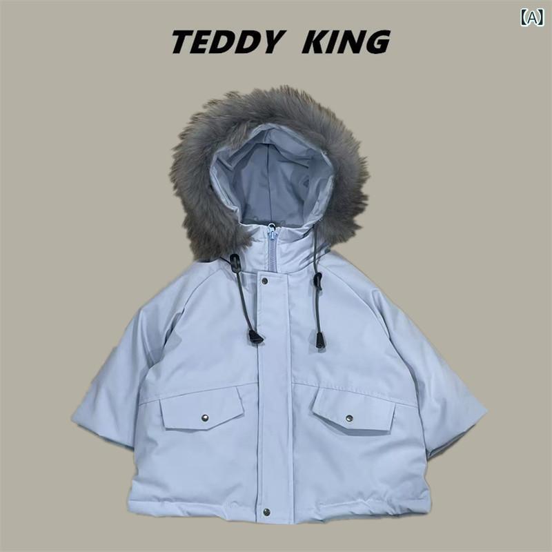 子供服 ダウンジャケット 中綿入り アウター キッズ 男女兼用 秋冬 防寒 暖かい 無地 フード付き 普段着 ブルー 90cm 100cm 110cm 120cm 130cm 140cm 150cm