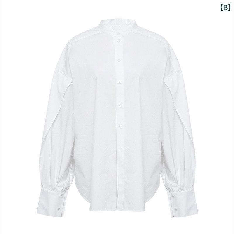 シャツ レディース 長袖 コットン ポリエステル 立襟 無地 トップス ブラウス ゆったり 通勤 オフィス カジュアル 秋冬 グリーン ホワイト