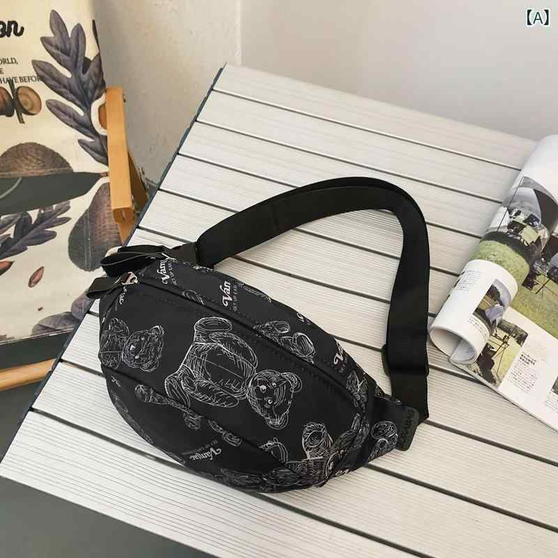 ウエストバッグ レディース かわいい ベア柄 ナイロン 撥水 斜めがけ ボディバッグ スポーティー 森ガール カジュアル アウトドア 黒 白 赤