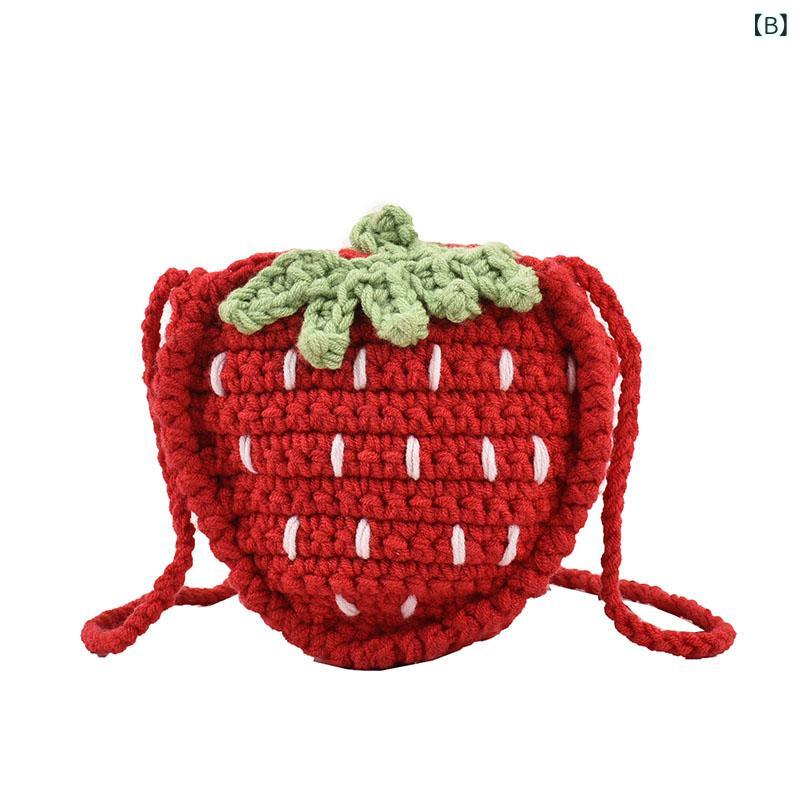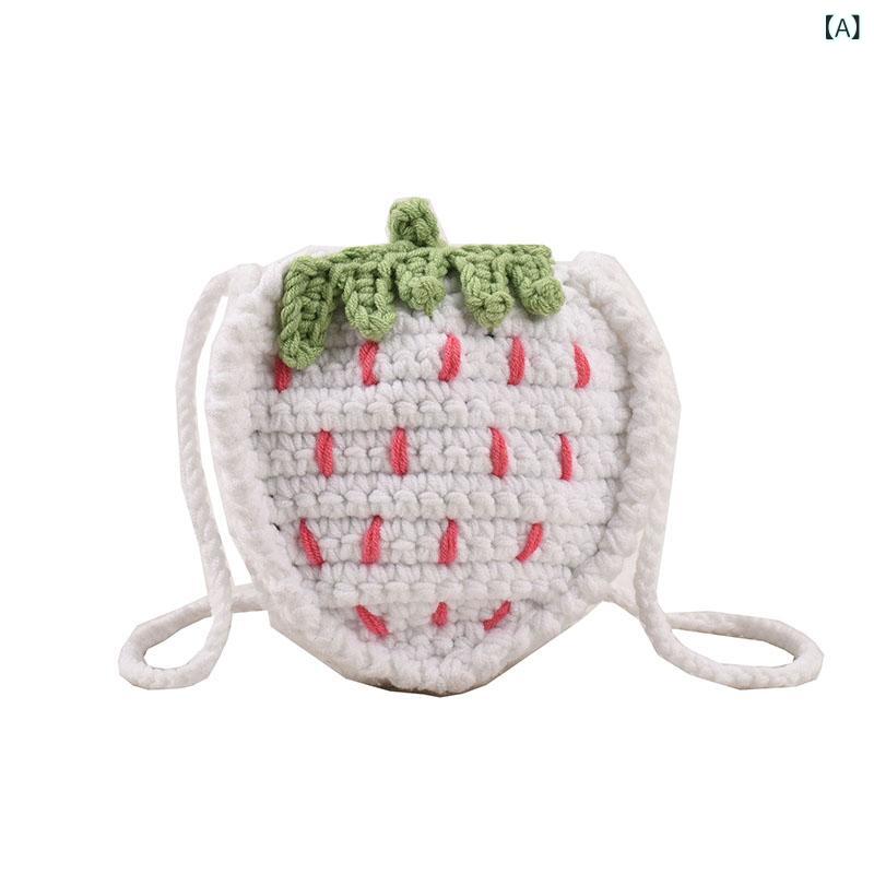 ニットバッグ 子供用 いちごモチーフ ショルダーバッグ 幼稚園児 女の子 ポシェット 斜めがけ 手編み 毛糸 超軽量 通気性 耐摩耗性 ホワイト レッド ピンク系
