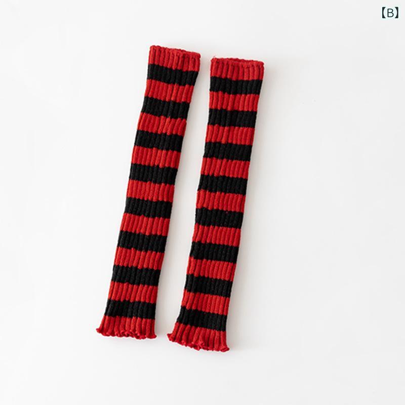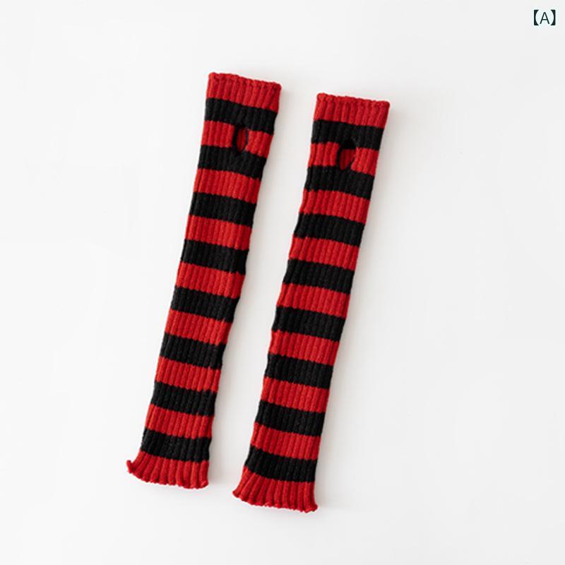 靴下 レディース ニット 太編み ブラック レッド ストライプ 手袋 秋冬 防寒 ロリータ JK ガールズ ニーハイソックス
