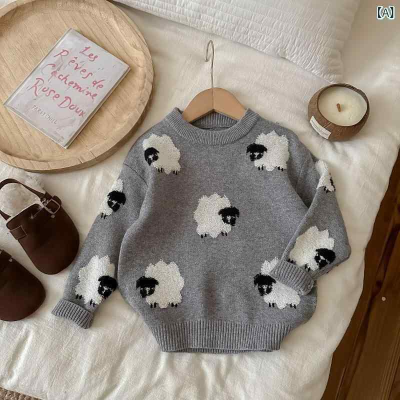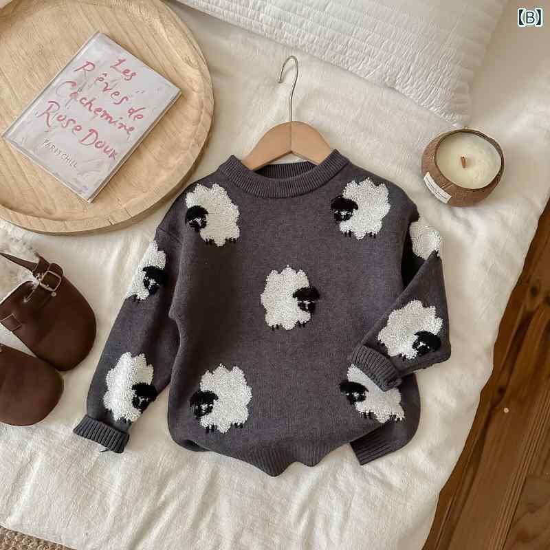 子供服 セーター 秋冬 かわいい ニット トップス 男の子 女の子 小羊 立体 80cm 90cm 100cm 110cm 120cm 130cm 浅灰色 深灰色 咖色 柔らかい 暖かい 長袖 丸首 プルオーバー 普段着