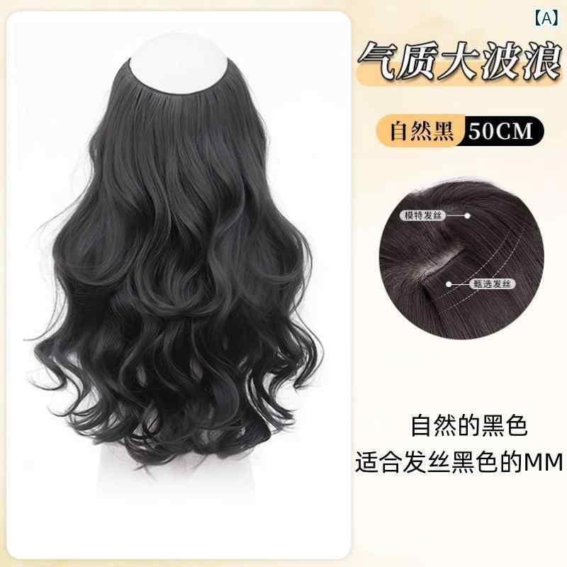 ヘアピース レディース 超軽量 隠しクリップ式 エクステ 50cm 60cm ロングヘア 大波 カール 自然 黒 ブラウン系 イメチェン ボリュームアップ