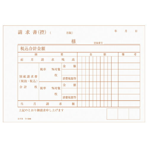 コクヨ KOKUYO NC複写簿 合計請求書 A6横 50組 ウ-349