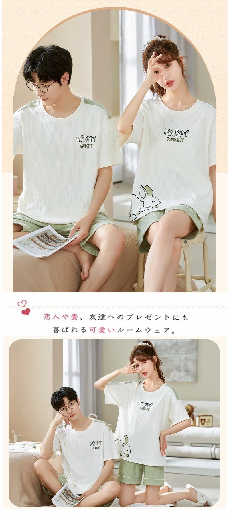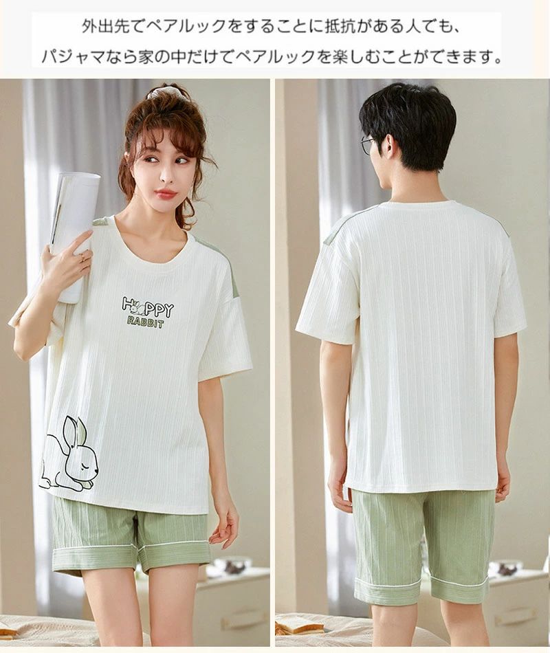 2着セットの価格★ペア パジャマ 半袖 カップル ペアルック 春夏 綿 コットン ルームウェア メンズ レディース 上下セット プル