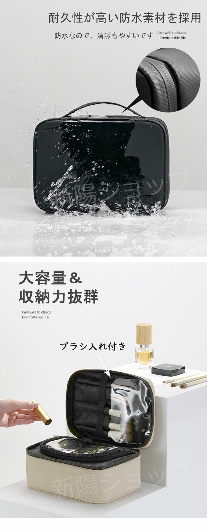 コスメポーチ 化粧ポーチ メイクボックス 大容量 立てて 仕切り 持ち運び 旅行 便利 収納 グッズ 整理 ブラシ収納付 小物収納 防水 おしゃれ