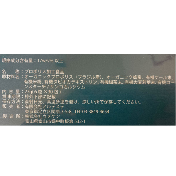 オーガニックプロポリス粒(27g(6粒×30包))【ノルデステ】