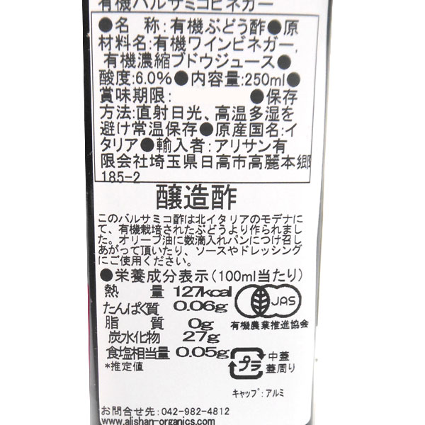メンガツォーリ 有機バルサミコビネガー(250ml)ビン【アリサン】