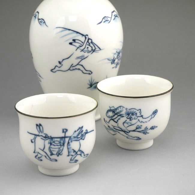 京焼 清水焼 鳥獣戯画酒器揃え 陶あん