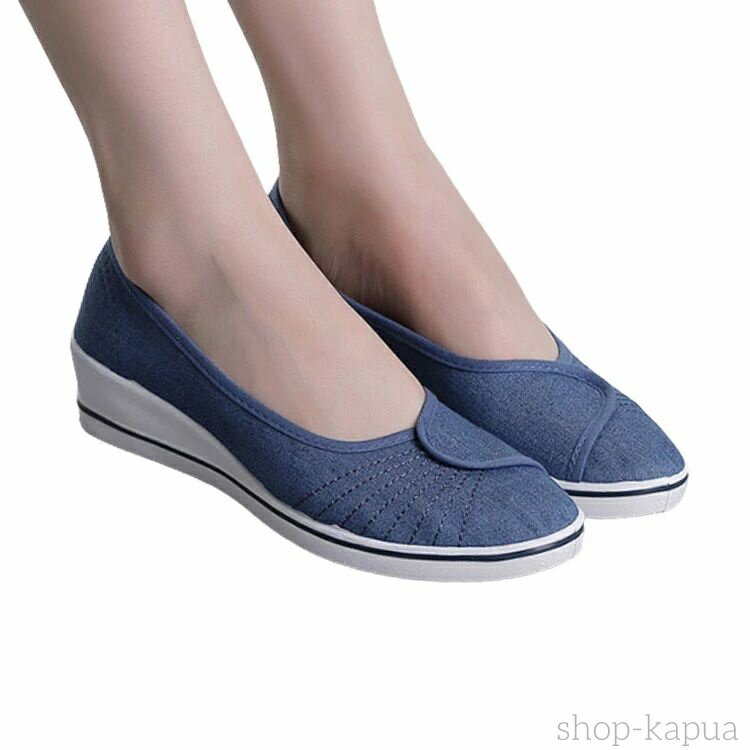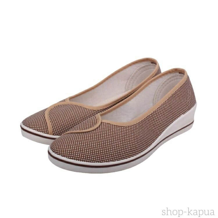 快適でスタイリッシュに履けるナースシューズ。走れる4cmのウェッジソール、柔らかでクッション性もよく、長時間立っても疲れにくい。アッパー部分は、通気性に優れた綿素材を採用し、ムレにくくより一層の快適感が得られます。柔軟で屈曲性にも優れているので足にしっかりフィットし、足の動きを妨げず歩きやすさをグンと高めています。履き口が広く開き、着脱も簡単に行なえます。クラシックなブラックとホワイトのほか、おしゃれなドット柄とデニムブルーも揃っています。 サイズ22cm 22.5cm 23cm 23.5cm 24cm 24.5ccm 25cm 25.5cmサイズについての説明ヒール約4cm 甲高、幅広の方はワンサイズ上をお勧め致します。 ※サイズ表の実寸法は商品によって1-3cm程度の誤差がある場合がございます。素材綿 合成ゴム色ブラック ホワイト ドットブラウン デニムブルー備考 ●サイズ詳細等の測り方はスタッフ間で統一、徹底はしておりますが、実寸は商品によって若干の誤差(1cm〜3cm )がある場合がございますので、予めご了承ください。 ●商品の色は、撮影時の光や、お客様のモニターの色具合などにより、実際の商品と異なる場合がございます。あらかじめ、ご了承ください。●製品によっては、生地の特性上、洗濯時に縮む場合がございますので洗濯時はご注意下さいませ。▼色味の強い製品によっては他の衣類などに色移りする場合もございますので、速やかに(脱水、乾燥等)するようにお願いいたします。 ▼生地によっては摩擦や汗、雨などで濡れた時は、他の製品に移染する恐れがございますので、着用の際はご注意下さい。▼生地の特性上、やや匂いが強く感じられるものもございます。数日のご使用や陰干しなどで気になる匂いはほとんど感じられなくなります。