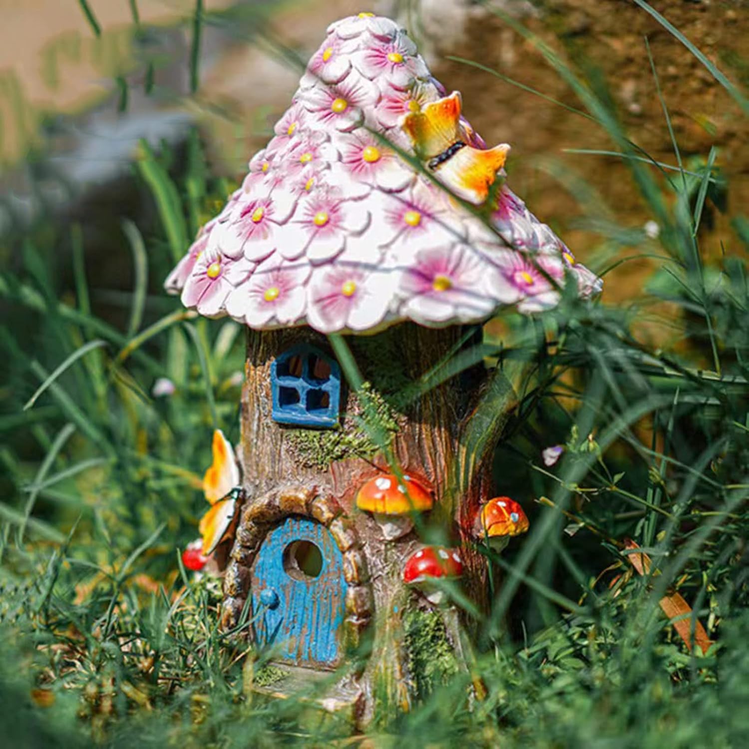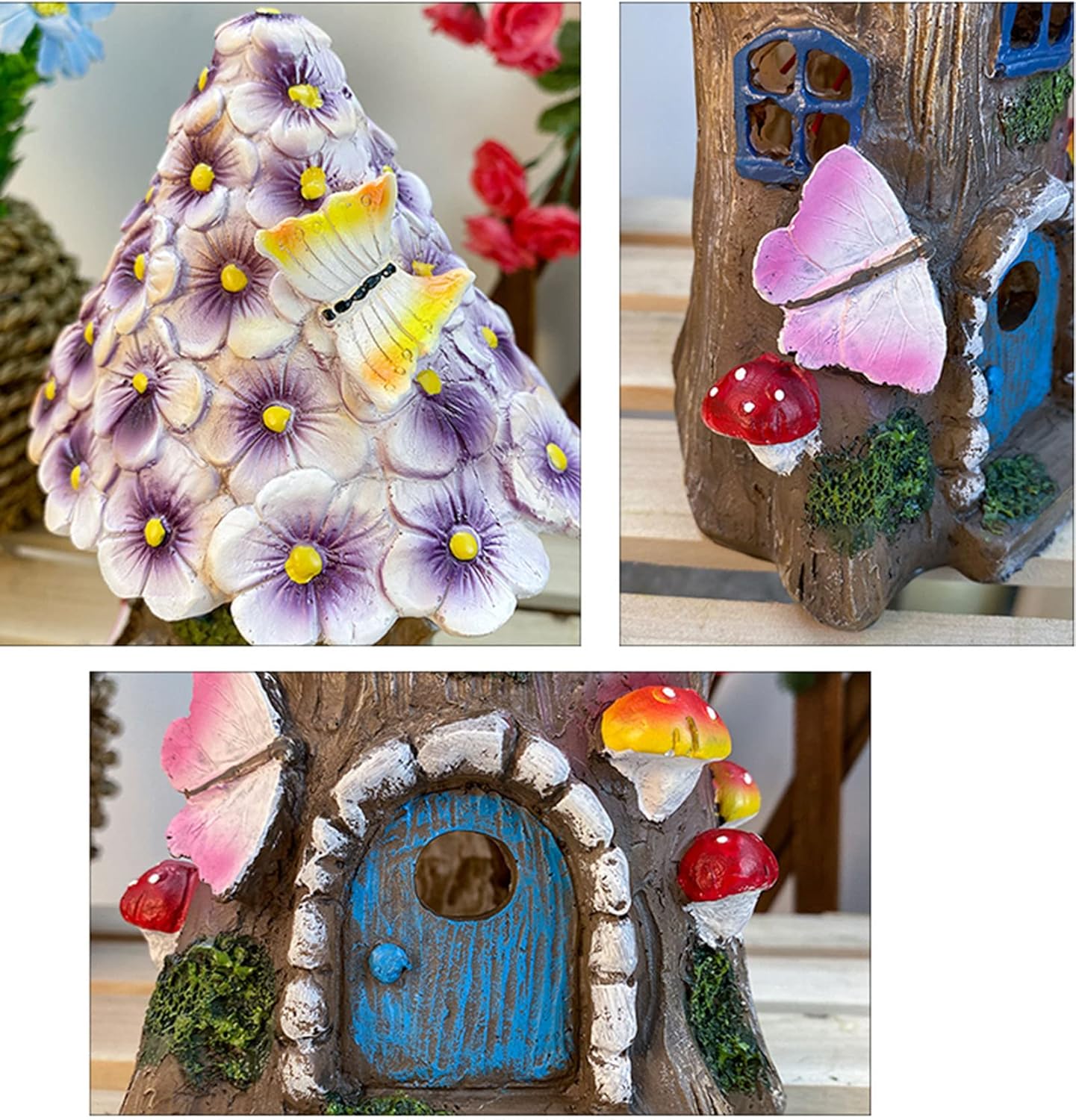 ガーデンソーラーライト キノコの家の像の彫刻 屋外の庭 中庭 太陽ランプ 装飾樹脂 工芸品 装飾品4.3X3.5X8in