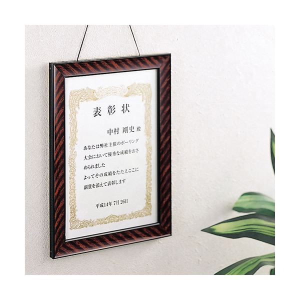 ■商品内容●OA対応賞状用紙など、JIS規格サイズに対応していますので、PCで出力した用紙がぴったり入ります。■商品スペックサイズ:規格B5フレーム内寸法:タテ245×ヨコ170mm最大用紙厚:1mm材質:表装材:ガラス(厚み2mm)、フレーム:再生ポリスチレン(ウレタン塗装)、裏板:MDF重量:500g付属品:ひも・ひも止め金具・額吊り金具その他仕様:●タテ・ヨコ両対応備考:※商品は箱に入っています。■送料・配送についての注意事項●本商品の出荷目安は【1 - 7営業日 ※土日・祝除く】となります。●お取り寄せ商品のため、稀にご注文入れ違い等により欠品・遅延となる場合がございます。●本商品は仕入元より配送となるため、沖縄・離島への配送はできません。[ カ-RB5 ]