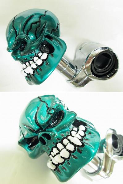 ハンドルスピンナー◎スカル(ドクロ)◎グリーン(緑) Detail ※装着例です Item Information 商品名 ハンドルスピンナー◎スカル(ドクロ)◎グリーン(緑) 商品説明 ドクロの頭を持ってく〜るくる♪ サイズ:幅52mm×奥行71mm×高さ110mm(最大部分)付属品:取付用六角レンチゴムパッキン2枚車庫入れなど細かい切り返しの時に大変便利です!一度使用したら手放せません。 注意事項 ハンドルカバーの付いている車輌は必ずハンドルカバーを外してハンドルスピンナーを装着して下さい。ハンドルスピンナーを装着後、ハンドルカバーをはめて下さい。2トン〜大型車まで装着可能ですが、一部の車輌(ハンドルの握りが極端に細かったり、太い車輌)には装着できませんのでご注意下さい。ゴムパッキンが2枚入っていますが1枚で動かなければ無理に使用しないで下さい。新品ですがパケージ(ブリスターパッケージ)によりスリキズがある場合がございますのでご理解下さい。画像の色は実際の色と多少異なることがあります。
