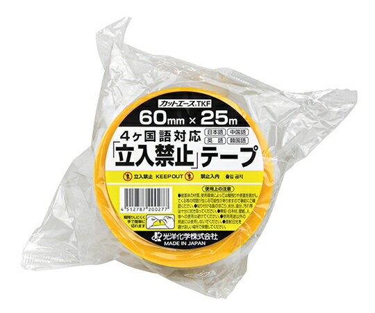光洋化学 カットエース TKF 立入禁止 60mm×25m 1個●4ヶ国語対応。手で簡単に切れる粘着タイプの印刷表示テープです。●危険表示(立入禁止)粘着テープ。●養生テープ用特殊粘着剤を使用し、糊残りしにくいです。●柔軟性の高い基材のため凸凹面にもしっかり貼り付きます。●幅:60mm●長さ:25m