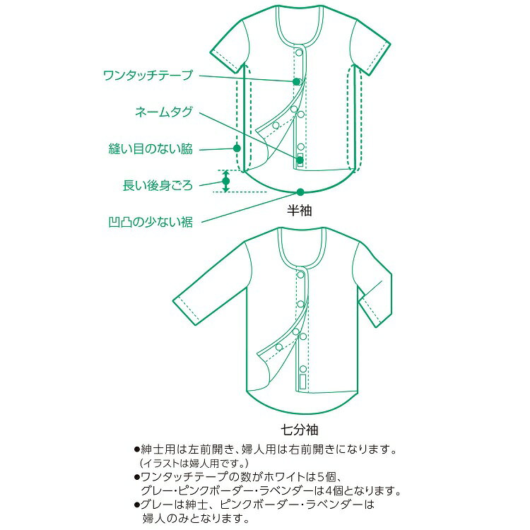 オオサキメディカル プラスハート ワンタッチ肌着 前開き婦人用 7分袖 Lサイズ 商品説明 『オオサキメディカル プラスハート ワンタッチ肌着 前開き婦人用 7分袖 Lサイズ』 ワンタッチテープのため、少しの力で楽に開閉ができます。 後身ごろの丈を長くしてあるため、前かがみにや座った時にも背中が出にくくなっています。 脇に継ぎ目がないため伸縮性が良く、肌に刺激を与えません。 袖部分も凹凸の少ない縫製で、肌へのあたりをやさしくしています。 名前を記入できるネームタグ付き。 毛足が短いソフトなワンタッチテープで肌にやさしく、ゴミもつきにくくなっています。 【オオサキメディカル プラスハート ワンタッチ肌着 前開き婦人用 7分袖 Lサイズ 詳細】 原材料など 商品名 オオサキメディカル プラスハート ワンタッチ肌着 前開き婦人用 7分袖 Lサイズ 原材料もしくは全成分 ポリエステル55%、綿45% 内容量 1着 カラー ホワイト サイズ 婦人用Lサイズ バスト86-94cm 商品重量:165.5g 販売者 オオサキメディカル 広告文責 株式会社プログレシブクルー072-265-0007 区分 介護用品オオサキメディカル プラスハート ワンタッチ肌着 前開き婦人用 7分袖 Lサイズ 1着×30個セット