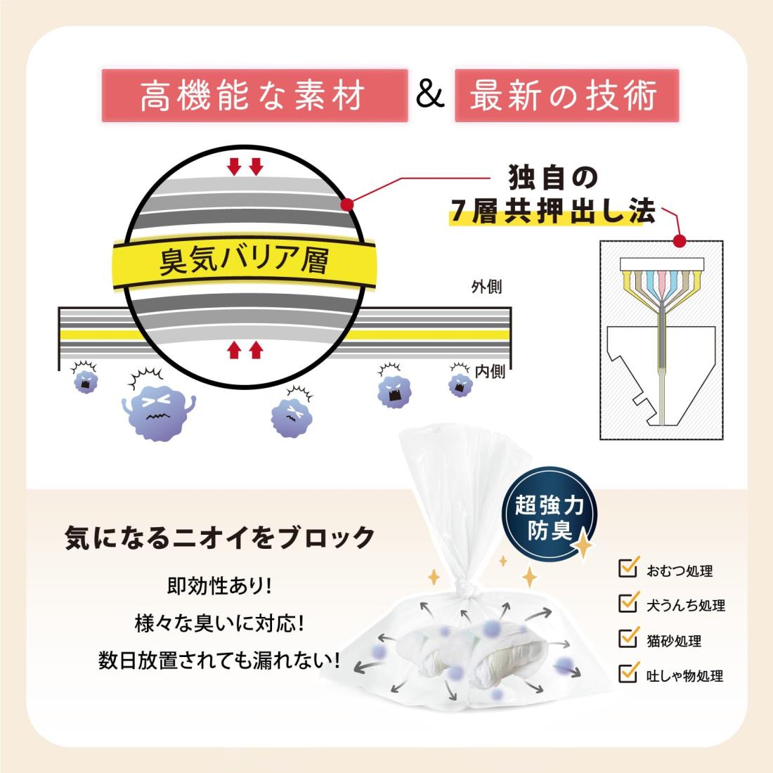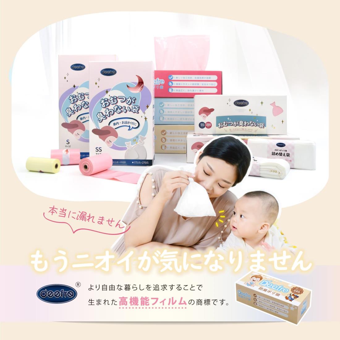 サイズ:Sx2個◆商品名:Deefre おむつが臭わない袋 440枚入 Sサイズ におわない袋 赤ちゃん用 おむつ処理袋 7層フィルム 厚くて丈夫 臭わない袋 ゴミ袋 消臭袋 袋カラー:ホワイト【驚きの防臭力】袋に練り込まれた防臭フィルムが、収容物からの臭気の透過を抑制し、数日放置されても嫌なニオイが漏れません。子供のオムツ処理やペットの汚物始末など、様々なシーンで大活躍。【高品質素材】共押出し法により0.02mm厚の7層フィルムを作製し、柔らかさも強度もあります。香料不使用で敏感な嗅覚がある赤ちゃんにも優しい。【結ぶだけ】箱を開けて、ティッシュのように1枚ずつ取り出せます。袋におむつを入れましたら、上部をねじって口をしっかり結んで下さい。【お買い得】220枚入*2個セット、合計440枚入り。枚数が多かったので気兼ねなく使えます。毎日のおむつ交換を快適に!【サイズ】S:縦33cm*横22cm。厚さ:0.02mm。Sサイズおむつを2個くらい収納できます。