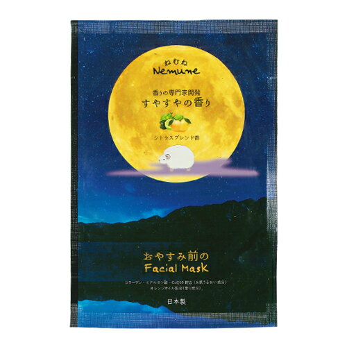 「メール便(日本郵便) ポスト投函 送料無料」「ホテルアメニティ」「シート状マスク」ねむね(nemune) お休み前のフェイシャルマスク すやすやの香り (シトラスブレンド香) 20mL x 3枚セット - 個包装パッケージ。【smtb-s】