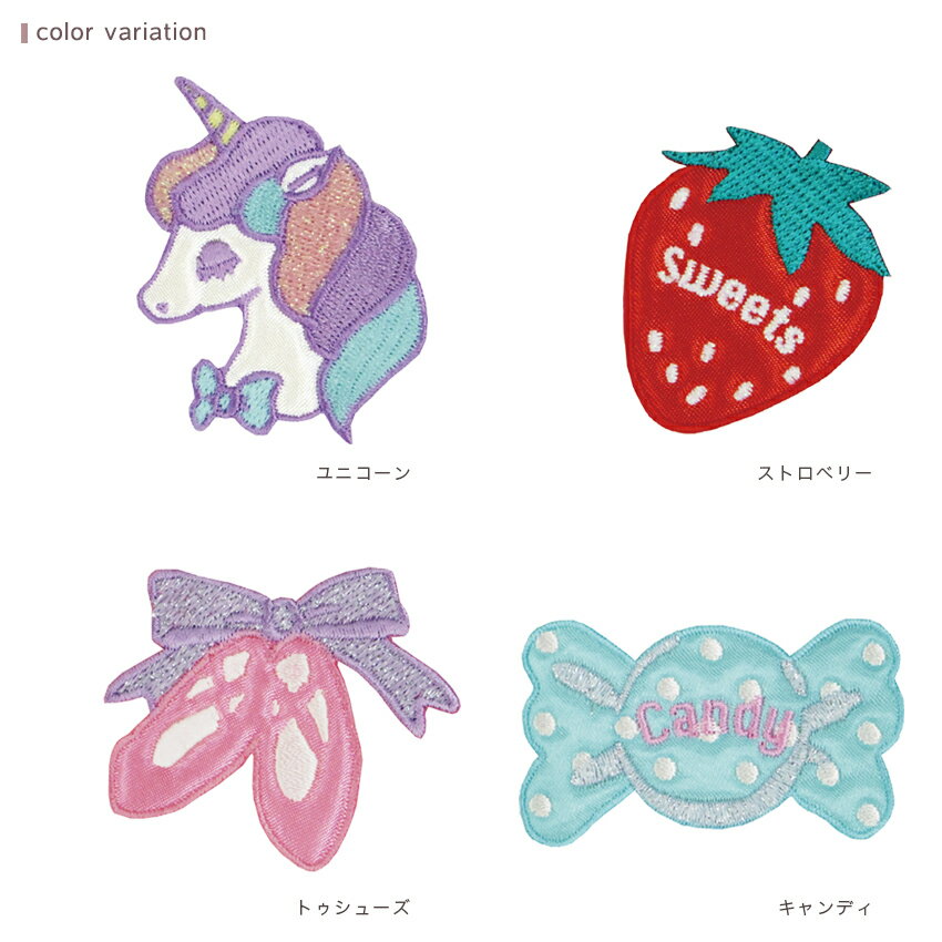 クラシカルモダンシュシュサテンワッペン ユニコーン ストロベリー トゥシューズ キャンディ | ゆめふわ ゆめかわ アイロン接着 入園 入学 レッスンバッグ ロリータ