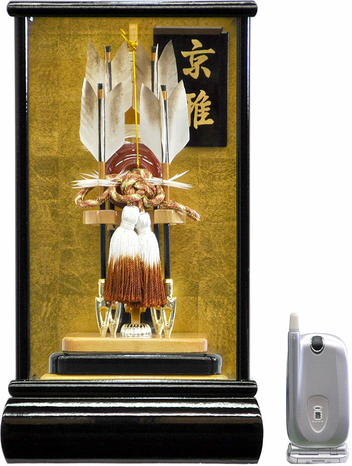 本商品はご注文タイミングやご注文内容によっては、購入履歴からのご注文キャンセル、修正を受け付けることができない場合がございます。サイズ間口21.5×奥行19.5×高さ34(cm)ギフト対応表商品番号:A1555【破魔弓】コンパクト黒塗面取ケース縁起良い四ツ矢本格飾り【破魔弓 破魔弓飾り】【お正月飾り 初正月】【破魔弓 ケース飾り】【天然羽】 コンパクト ミニ新作 秀光 限定品 特選 目玉商品 お買得 人気 ランキング【A1555】詳細写真【破魔弓】コンパクト黒塗面取ケース縁起良い四ツ矢本格飾りコンパクト黒塗り面取りケースに、縁起の良い四ツ矢をいれたシンプルな破魔弓飾りです。どんなお部屋のスペースにも簡単・綺麗に飾ることが出来、収納にも便利なこの破魔弓飾りは、男の子の初節句のお祝いに最適な品物です。破魔弓飾りに多く見られる弓や刀などを付けずに、「天然羽根」で作った縁起の良い「四ツ矢」のみを使った清純さが大変素敵な破魔弓飾りです。「天然羽根」を細工して作られたこの美しい矢羽根は、羽根の芯を焼く「羽根焼き」の技術を取り入れて出来たもので、熟練の技と経験を携えた職人がひとつひとつ手作りで作り上げたものです。また軸には篠竹を細く、まっすぐ加工したものを使い、均等のとれた四本の矢羽根を木製の二段式中台の上に力強く飾りました。また鏃(やじり)の先は「魔を射る」ために光輝く金メッキ加工を施しました。ケースの中央に木目を活かした的をつけ、白とベージュの正絹飾り紐を縁起の良い吉祥しばりで結び、大変華麗なお飾りとなりました。丈夫な木製素材を使ったこの黒塗りケースは、厚みのあるガラスの縁をカットした「面取りガラス」を使用し、ゆったりとした開放感と高級感を同時に引き出しました。お手入れなどもほとんど必要のない「カブセケース」になっており、収納にも便利です。この破魔弓飾りは邪気を追い払い、雄々しく、力強く、お子様の健やかな成長を願うお守りとして、末永く飾っていただきたい由緒ある日本の伝統工芸品です。是非、ご検討くださいませ。