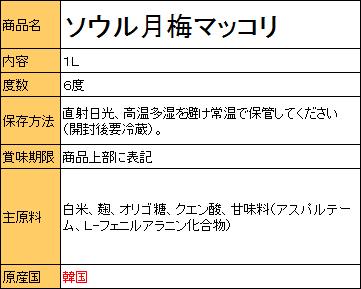 マッコリ ソウル月梅マッコリ1本 韓国伝統酒 韓国どぶろく 生酒 爽やか 家飲み 定番 人気 1000ml【カンシネ食品】