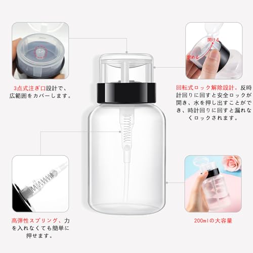 Seiunn ネイルクリーナーボトル 空ポンプ ボトル 200ml 2個セット ネイルリムーバー容器 ポンプディスペンサー アルコールボトル 液体ボトル 片手で出せる 押し下げ式 透明 50枚ネイルワイプ 付き (黒と白)ブランド: Seiunnメーカー: Seiunn型番: xiejiashuifenzhuanganyaping-2pc