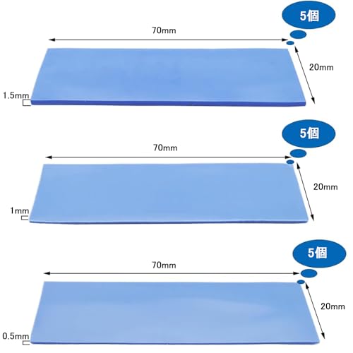 TerraShine サーマルパッド 15個 両面放熱シリコーンパッド 冷却ラジエーターフィン 熱伝導 シリコン 3種類の厚さ 粘着性と柔らかさ SD CPU GPU LED ICチップセット冷却用 厚さ0.5mm .0mm .5 mmブランド: TerraShineメーカー: TerraShine