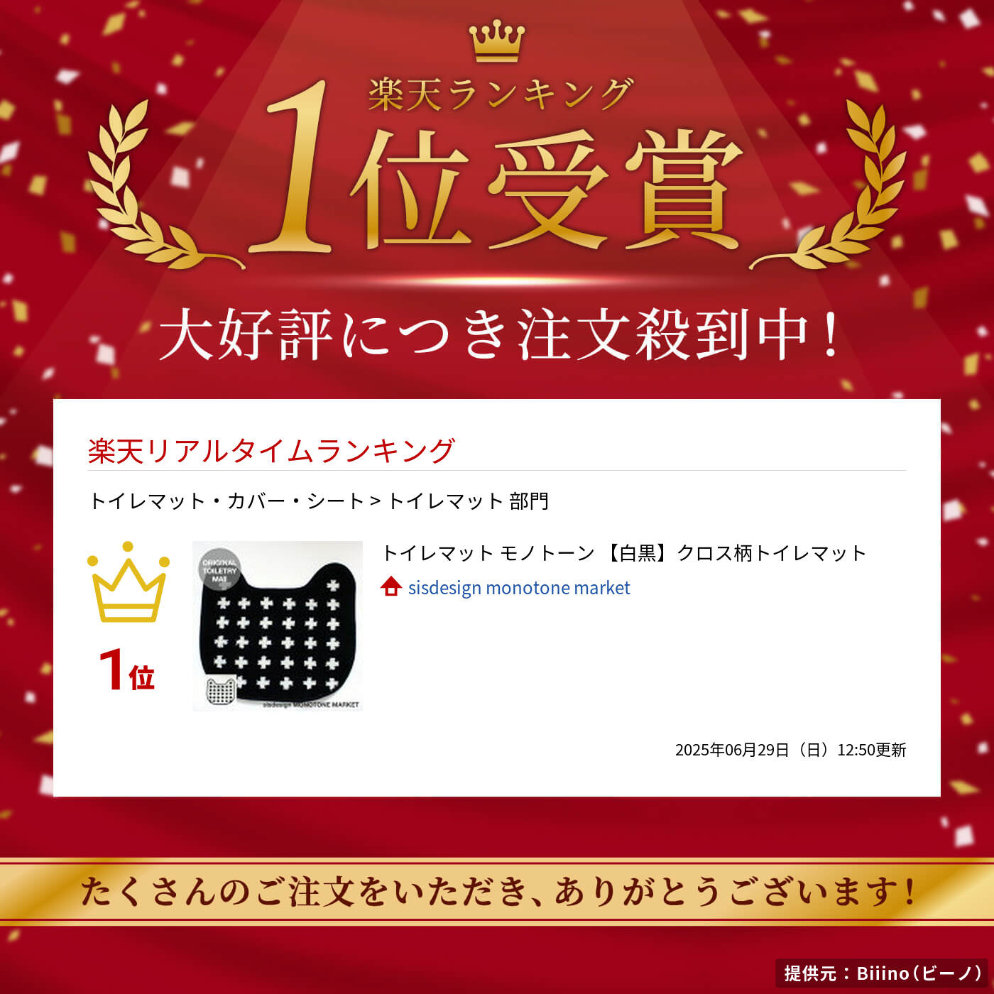 ご要望の多かったオリジナルトイレタリーが登場です☆。 モノトーンデザインでトイレがスタイリッシュな雰囲気になります! 別売りのフタカバーと併せてトイレをコーディネートして下さいね。フワフワのボリューム感が気持ちいい、トイレのアクセントにもなるモダンなマットです。 【コチラの商品は、宅配便でのお届けです。】 ■サイズ:縦50cm×横55cm ■素材: アクリル 100% *裏には滑り止めの加工有り ■カラー:ブラック(白クロス)/ホワイト(黒クロス) ■1枚の価格です。 ■日本製 ■お手入れ方法 多少ケバ落しますので、洗濯ネットを使用して単独洗いして下さい。 柔軟剤入り洗剤・柔軟剤・漂白剤は使用しないでください。 ■コチラの商品は、宅配便でのお届けです。 ■ご使用の際の注意 使い始めは遊び毛・ホコリ等が多量に発生する場合がございますが、お使い頂いていくうちに出なくなります。 床暖房等の上には敷かないでください。