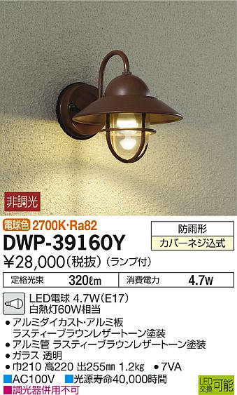 エクステリア 屋外 照明 ライト ダイコー 大光電機 ポーチライト DWP-39160Y ラスティーブラウンレザートーン塗装 アンティーク 電球色 ブラケットライト ポーチライト