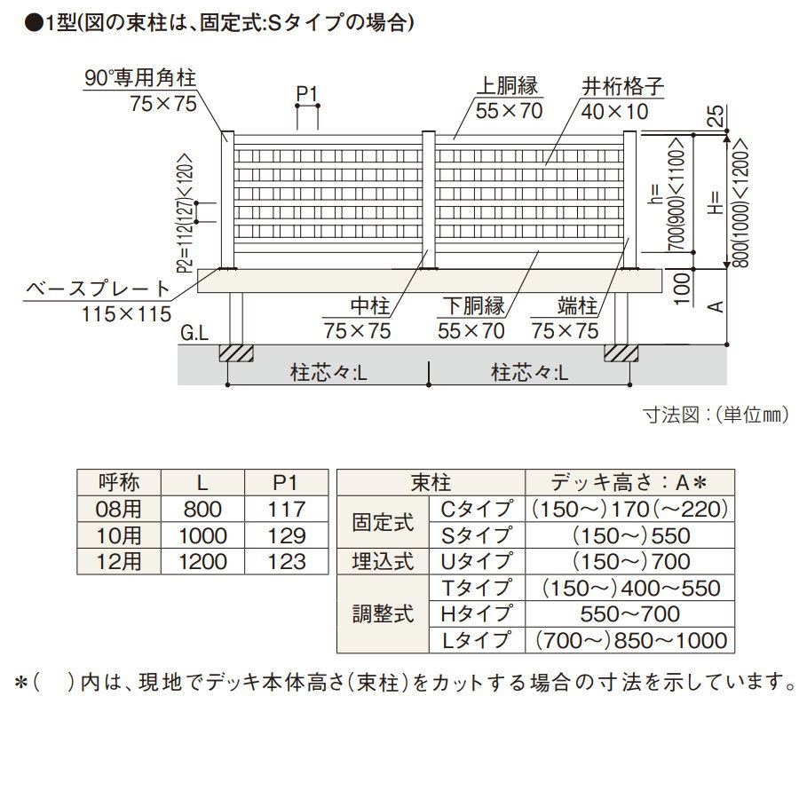 【無料★特典対象】 YKK YKKap リウッド デッキフェンス 1型 RNT-21 サイズ10用T120 W945×H1100 井桁格子 ※フェンス1枚 ガーデン DIY 塀 壁 囲い 境界 屋外