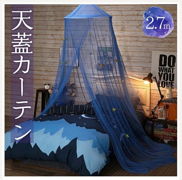 天蓋 カーテン 蚊帳 モスキートカーテン ブルー 星 夜 子供 モスキートネット 防蚊 ベッドカーテン メッシュ
