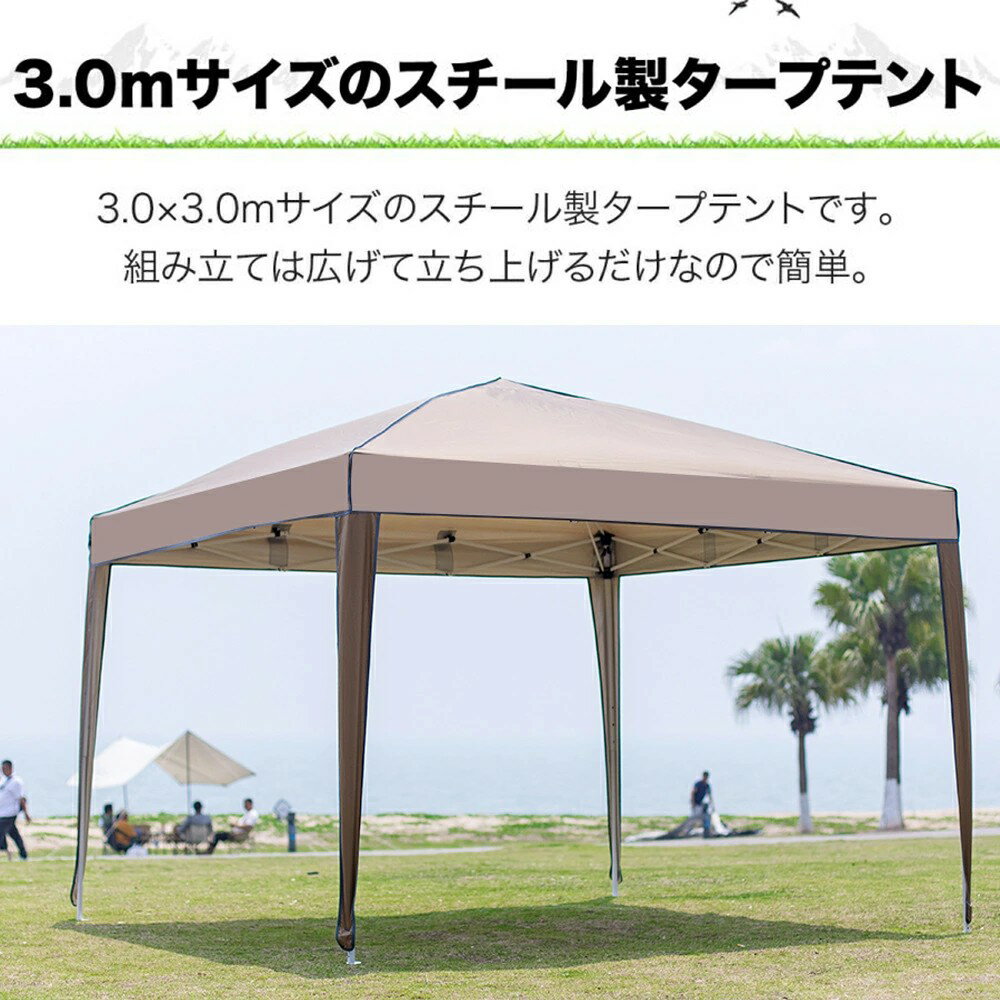 3m×3mタープテント ワンタッチタープテント 超大空間 大型テント 多人数対応 アウトドア 折りたたみ UVカット屋外 釣り 旅行 野営 遮熱性 花見 公園 持ち運び 軽量 簡単組立 収納バッグ付 日よけ 頑丈 キャンプ用品 ファミリーテント 8-15人用