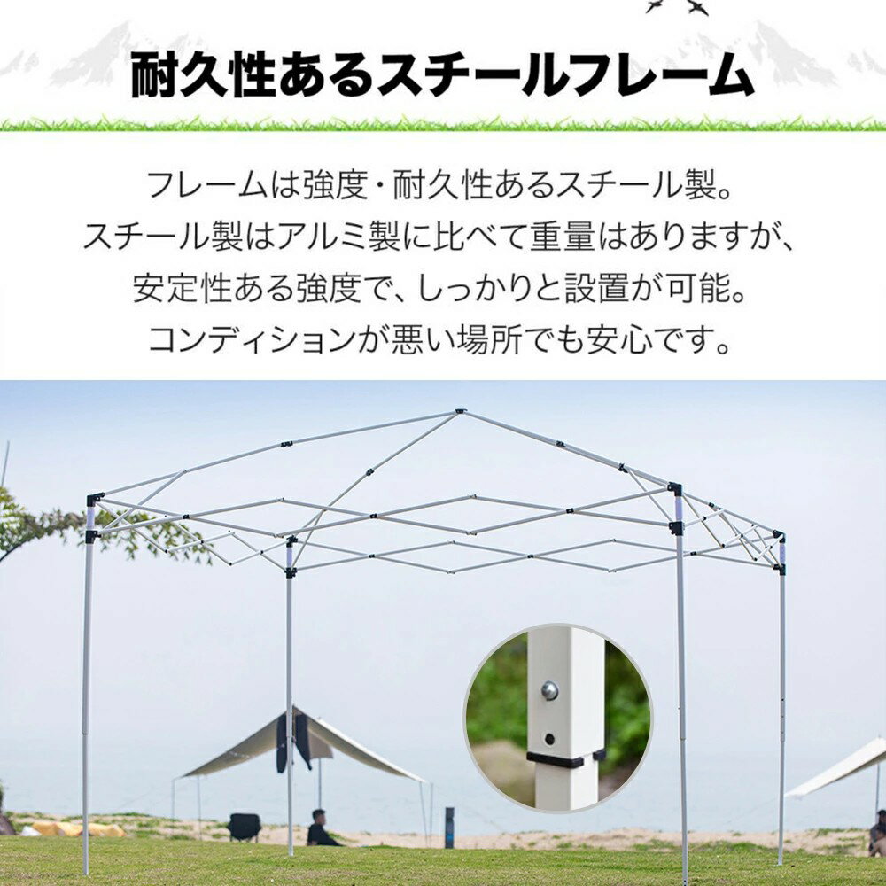 商品情報 【特徴】 簡単設置 収納ポケット 高耐水 UVカット 【耐水圧】 テントの生地には耐水圧の撥水素材を使用。急な天候の変化にも慌てない!小雨程度なら問題なく使用できる防水性能です。 【用途】 ウトドア、ドライブ旅行、旅行、キャンプ、公園、お釣り、ハイキング、 BBQ、運動会、クラブ活動、お花見など。 ※注意事項 ※撮影の為、画質等の関係上、色などが実際の商品と若干違ってしまうこともあるかもしれませんがご理解のほどご入札ください。予めご了承ください。 ※製造時期によりデザインや仕様に若干の変更がある場合がございます。予めご了承ください。 ※本機を利用したことによる、直接もしくは間接的に生じた損害、破損について当店は一切の責任を負いません。