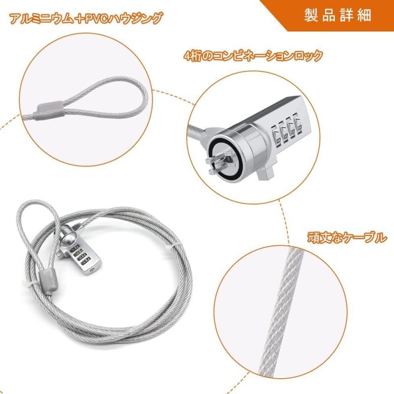 YIBOOOM セキュリティロック パソコンセキュリティワイヤーロック 4桁 ダイヤル錠 盗難防止 PC パソコン用 直径3.5mm