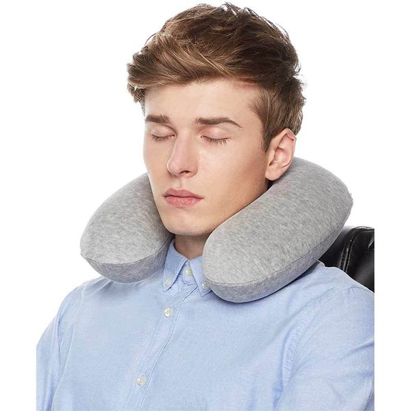 即納 ネックピロー ネッククッション U型 グレー ネックスタンド まくら 昼寝 首枕 トラベル 旅行用 安眠 遮光 快眠 サポート