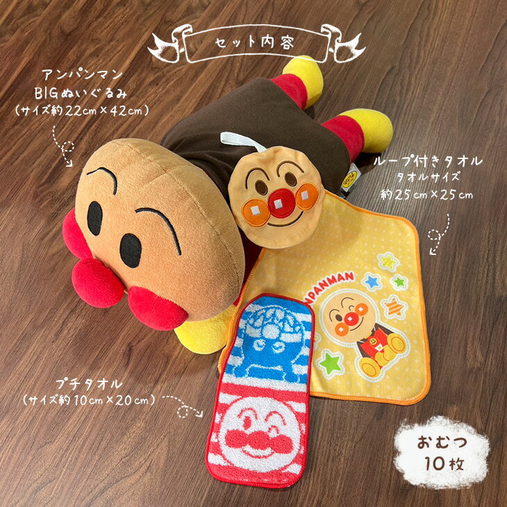ギフト対応についてはこちらをご覧下さい。 商品名 BIGサイズ アンパンマンのおむつケーキ 内容 おむつ×10枚 アンパンマンのプチタオル(大きさ:約10cm×20cm)×1枚 アンパンマンのループ付タオル(タオル大きさ:約25cm×25cm)×1枚 アンパンマンのBIGサイズお昼寝枕ヌイグルミ(大きさ:約22cm×42cm)×1個 サイズ 現品サイズ 約22cm×42cm×30cm お届け箱サイズ 約30cm×50cm×30cm ご注意 商品画像がモニターの発色の具合によって実際のものと色が異なる場合がございます。ご了承ください。 商品カテゴリ: 出産祝い おむつケーキ アンパンマン 男の子 女の子 おもちゃ 人気 お洒落 おしゃれ かわいい おもしろ オムツケーキ ブランド 名前入り 名入れ 名前 オーガニック プレゼント お祝い 御祝い 御祝 ランキング 3段 送料無料 送料込み 北海道 メリーズ パンパース タオル フェイスタオル バスタオル ハンカチ スタイ ギフトセット ギフト セット 日本製 ママ 新生児 双子 二人目 三人目 3000円 5000円 10000円【送料無料】出産祝いのギフトに最適なおむつケーキ(オムツケーキ)!おむつ×10枚+アンパンマンのプチタオル×1枚+アンパンマンのループ付タオル×1枚+アンパンマンのBIGお昼寝枕ヌイグルミが付いてインパクト抜群!送料込みの嬉しいオムツケーキセット♪