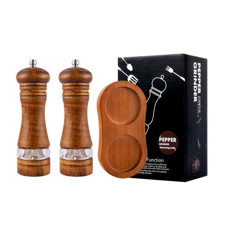 受け皿付き 木製ソルト 黒コショウ ペッパーミル ミルグラインダー 手動 ソルト 手動 岩塩挽き 胡椒ひき スパイス 調味料挽き 3点セット 粗さ調節 使いやすい こしょう 香辛料 塩 黒胡椒 胡椒 山椒 花椒 ミル ミル